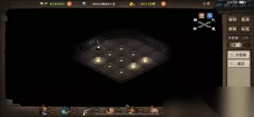 【彩珠阵】 平面魔方,移动次数有限制。调整至每排或每列是同色即算作成功。 【宫灯阵】 触动任意宫灯都会使相邻宫灯全部点亮或熄灭,目标是要使所有宫灯都处于点亮状态。 最后一个彩灯会使得自身和周围相邻的彩灯亮起,因此需要保证倒数第二次控制彩灯之后出现只有最后一个彩灯和其相邻的彩灯处于熄灭状态。因此使用倒推法即可解决问题,挺有意思的小游戏。