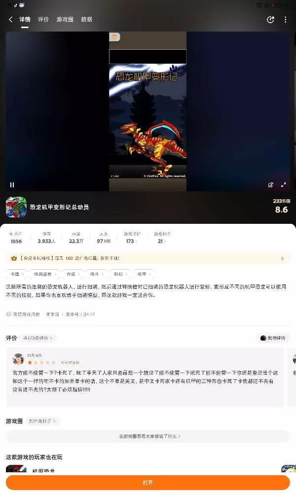 如果你单纯喜欢恐龙的话,你可以去玩这个,但有时候会加载不进去