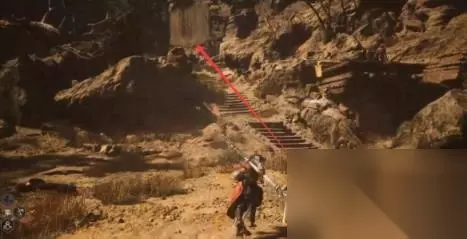 3.拿到鳞片后传送到挟魂崖-枕石坪土地庙这(只有解锁这个传送点才能传送过来),非常近的地方有个楼梯,走上楼梯会听到有人念经,互动后就可以进流沙瀑布,小骊龙就在里面。