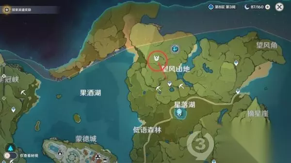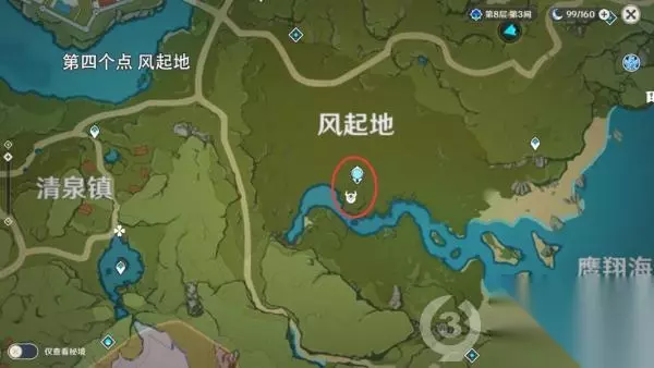 第四个位置 风起地传送到风起地七天神像,这个点位回头直接往树下走就能看见