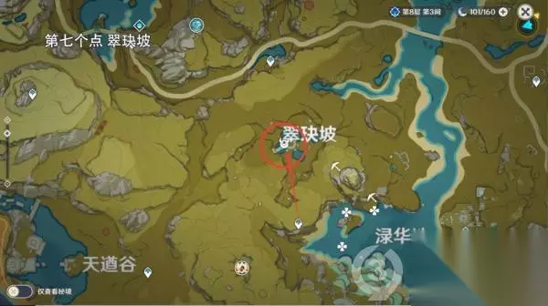第七个位置 翠玦坡传送到渌华池上方传送点,按照路线往翠玦坡跑即可