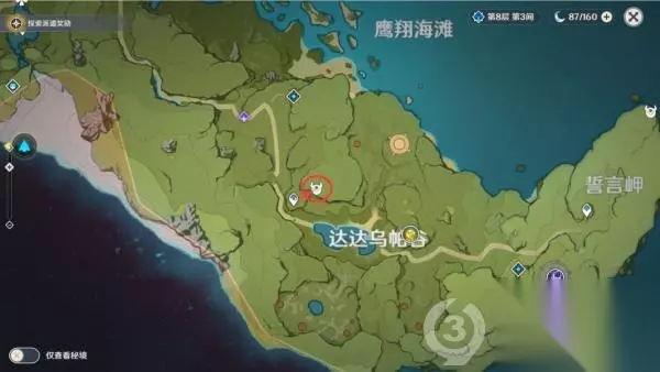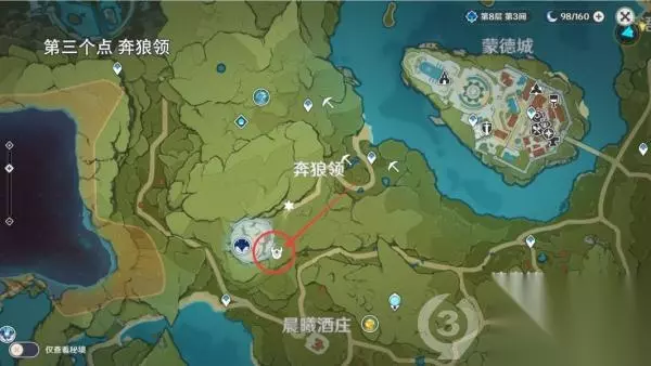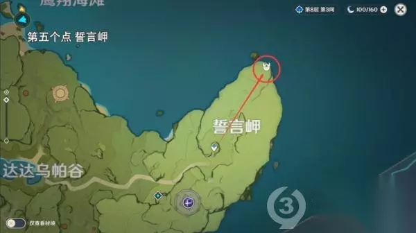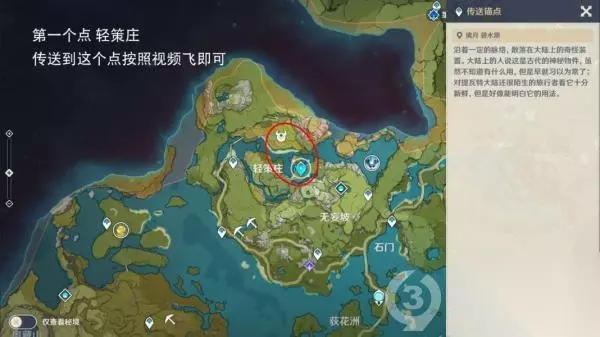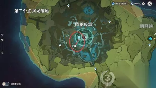 第二个位置 风龙废墟传送到七天神像,按照路线标点走即可