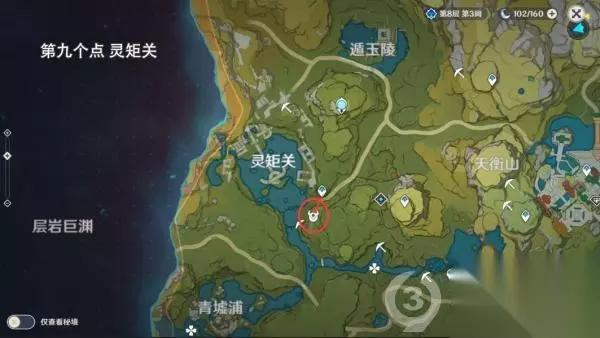 第九个位置 灵矩关传送到图中传送点往下飞即可看到