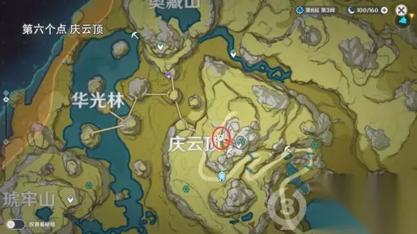 第六个位置 庆云顶传送到庆云顶按照路线飞即可