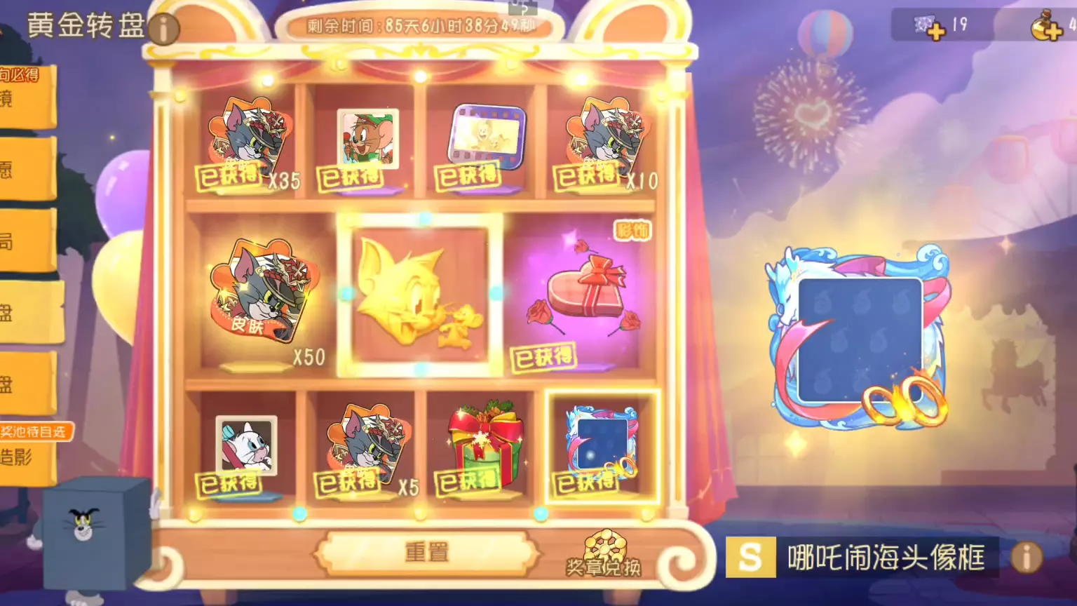 玩家分享猫和老鼠手游的游戏内容,提到周四更新后,借助魔术师皮肤限时折扣活动,参与黄金转盘抽取魔术师的S级皮肤王牌特工,还展示了抽取到的头像框等奖励,同时提及可白嫖魔术师相关内容。