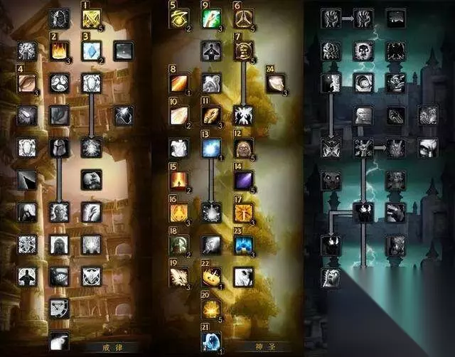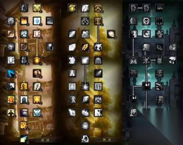 神牧 13戒律/58神圣(属性优先级:高智装将成为首选,其他为法术强度>精神>急速>5回>爆击) 先点出戒律的13点,再点出神圣的58点。下面的是天赋示意图,图标左上方的数字为点天赋的顺序。