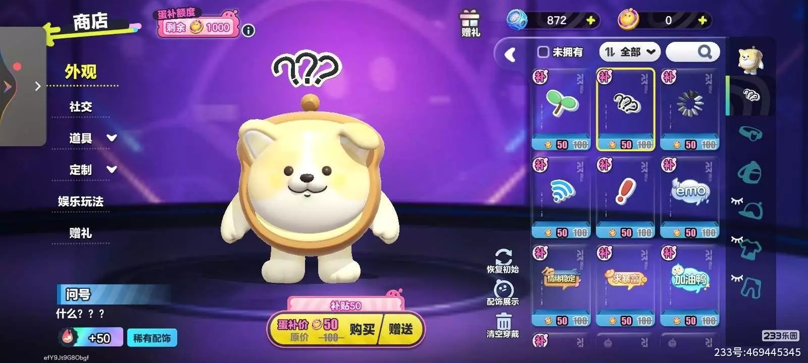头饰-问号,消耗蛋币50+额度50