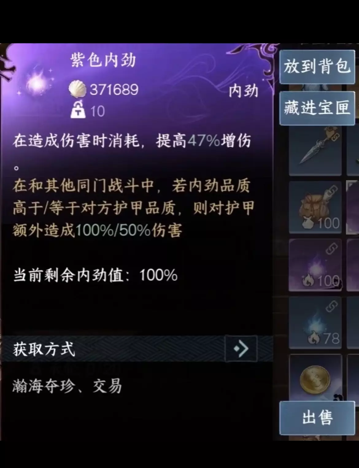 险境其实资源没有比凡境高太多,鬼鲨会掉金装,但是带飞刀才好打,带刀又不容易打玩家,这个自己权衡。 1.装备选择,武器改选透骨针,这是一把PVP武器,具体可以看技能介绍。绝境里的玩家较多,凡境貌似只有一两个别的玩家,绝境得有三四个的样子。 在凡境里可以好好搜菜,但绝境里,武力不够、地图不熟的话你就是别人的菜[捂脸R]虽然蓝装肥不了别人,但搜到好东西也容易保不住。 舍不得买金装的可以先用系统送的紫装试试水,掉了也没那么心疼,内力最低也得是紫色,有增伤,如果要带其他颜色的,可以按需求长按血条左侧的内力火焰切换。 像图二里的丹心,和侠影、剑决,都是玩家角色的代号(当然,也可能是人机),只有在赛后的战绩界面我们才能看到这些人的真名,不过也没有具体信息,可能是怕人寻仇吧[笑哭R] 2.黑天尊使会在中央大街上徘徊,在他附近会有这个提示,见到了就得避让,反正主包是打不过的,太恐怖了。 走房顶是个好选择,还能躲玩家,市舶司旁边那里上房顶后能走很长一段,刺桐商会的大宝箱那里也得上房揭瓦,上面有个鬼鲨,在下面很容易被打残。 3.险境里PVP是核心,主包是不敢专心收集资源的,只能鬼鬼祟祟搜集一下,出生点离大宝箱近的话就快去,远的话可以前往人容易路过的草丛蹲守。 这个模式里的先手非常重要,即便对方是橙武我们是紫武,先手依然可以对对方造成大量伤害。所以主包以前不玩碎梦都转了,因为梦隐让你有机会在后手的情况下撤离进草丛并补满血量。 对手撤走后主包会简单扫一下草丛,穷寇莫追,此时敌暗我明,还是先躲远点免得被别人抢了先手。 注意在草丛里的时候,附近的两团草丛的人是互相可见的,但是你出去就会看不见对方。此时可以向远处走,可以假撤也可以真撤,因为有高低差的时候不太好抢先手。 黑市里有卖战术道具,这个机关鸢可以扫描别人,但是一次性道具,并且时间很短,主包啥也没看清。其他道具看起来也很有用,但都需要时机和操作,想试的话就在战前放进背包,局内可以长按无忧饮切换道具,都是要提前考虑好的,不要手滑直接用掉了。 4.资源方面,本周对金紫色物品的市场需求会大涨,优先供给自己的训练。今天主包的黑市还出了一把金色武器,之前攒的破烂终于派上了用场[笑哭R] #逆水寒手游 #游戏攻略 #逆水寒关山飞鸿 #逆水寒搜打撤 #瀚海夺珍