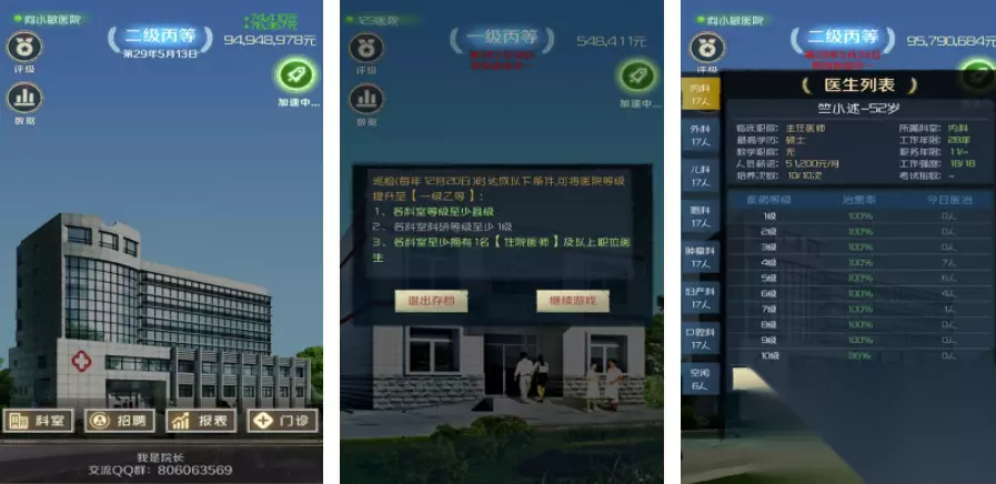 高速下载 普通下载 4、《模拟经营暴走医院》 玩家会跟患者发生冲突,然后就会有设备上边的冲突,降低金钱之后,就会有很多不好的事情发生,不过都是暂时的。慢慢的药用温柔的方式去对待每一位病人,然后来提高自己的名声,治病救人认真负责,这样就可以额外得到不少的金币。每天多可以去招聘栏目里边去刷新,然后了解各种踢馆事件。你可以通过比较医生的能力来决定是否可以防御成功。如果成功了就可以得到金钱跟声望。
