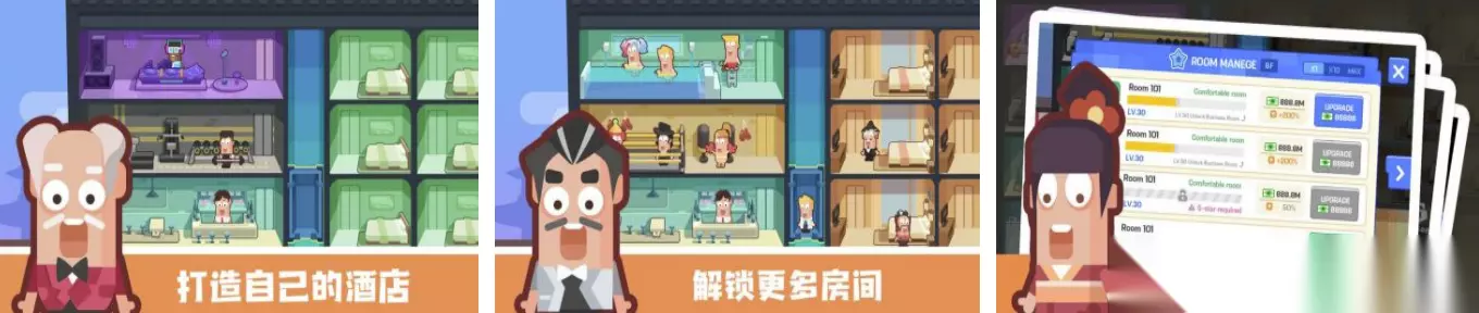 高速下载 普通下载 3、《连锁酒店大亨》 主角的富二代好友祖传的酒店突然就破产了,最后就留下了一栋三层的小酒馆,然后好友将这个酒馆交给了主角进行打理经营,到底结果会是如何呢?其实任务不是特别的难,玩家只需要做好决策,其他的都会按照系统的流程正常的呈现管理模式,全程基本都是自动的化的钻钱。初始都是从一个房间开始,然后慢慢的开战更多的房间,吸引更多的客人,打造更加广阔的商业区,让客人更加的愉快,消费量就会逐渐的上升,等待后期时机成熟了之后就可以去参加酒店的评比了。一星到五星,慢慢的变得更加强大更加豪华,从而将自己的酒店开满全球,成为新一代的产业大亨。