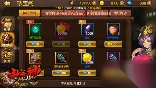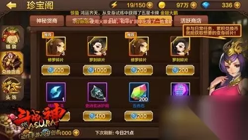 荣誉商店顾名思义使用的是荣誉币的商店,在荣誉商店中我们可以购买到修罗和罗刹的碎片。 活跃商店:
