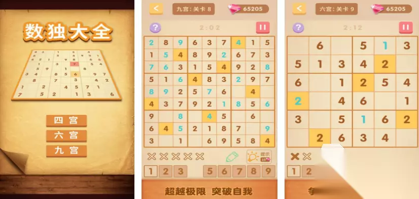 连连看是比较经典的一种游戏,尤其是像单机连连看这种以点击为主的连连看玩法,游戏里会有很多美味的食物,玩家需要做的就是点击相同食物让他们消除,但是这是有前提条件的,就是在游戏里两个食物之间连接线的转折点不能超过两个,要仔细观察这些食物的分布,按照正确的顺序消除,游戏里总共设定了五种模式,可以按照自己的需求选择不同的模式体验。 高速下载 普通下载 优先233乐园APP下载 6、《数独大全》