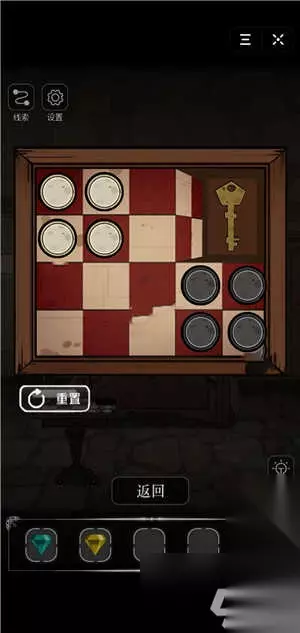 11、如图点击地上的模特,将眼球放进去就可以获得黑色的棋子; 12、接下来用钥匙打开卧室的床头柜,将得到白棋棋子 ; 13、在完成黑白棋子棋盘的小游戏后我们可以得到一把衣柜的钥匙,玩这款小游戏也很简单,只要你会玩中跳棋就能轻松取胜;