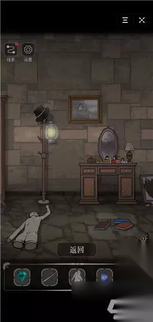 9、到这里基本上就完成了第一章,你点击打开第二个房间大门就可以成功逃离了。 密室侦探第二关怎么过: 1、到了第二关我们点击最后一扇门,点击地上获得火柴,然后回到第一扇门点亮油灯,就可以得到铁棍了;