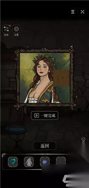6、来到卧室点击中间的挂画按住圆圈中间部位中间让它旋转,玩一个小游戏赢得小凿子吧;