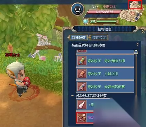 步骤一、 使用怪物血条旁边的目标信息可查询到具体的掉落信息,需要对怪物进行部位破坏,击杀后有一定几率获得转职任务道具