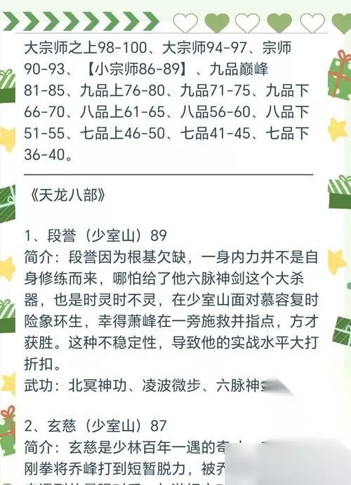 三、副本挑战:副本是提升等级和获取装备的关键,新手玩家要积极参与。 四、帮派招募与加入:加入一个活跃的帮派能够为你提供强有力的支持和合作伙伴。 五、武功修炼:通过不断修炼武功,提升自己的战斗能力和技能。 六、装备强化与打造:合理利用装备强化和打造系统,提升自己的装备等级和属性。 七、宝石镶嵌技巧:宝石能够为装备增加属性,了解宝石的种类和镶嵌技巧对新手玩家非常重要。 八、日常任务与奖励:每天完成一些日常任务可以获取丰厚的奖励,帮助你更快地成长。 九、武侠修行与历练:通过武侠修行系统,提升自身实力,解锁更多高级技能。 十、PK技巧与策略:在与其他玩家的战斗中,掌握一些PK技巧和策略是非常重要的。 十一、装备合成与改造:利用合成和改造系统,将低级装备转化为高级装备,提升自己的战斗力。 十二、好友互动与组队玩法:与好友互动、组队进行任务可以增强游戏乐趣和提升合作能力。 十三、公会战与竞技场:参与公会战和竞技场活动,锻炼自己的实力,与其他玩家一决高下。 作为《武林3》的新手玩家,掌握这13个必备常识,将会让你在游戏中更好地成长。记住这些关键信息,合理利用游戏中的系统和机制,相信你会成为一名强大的武林高手。加油吧,新手们!