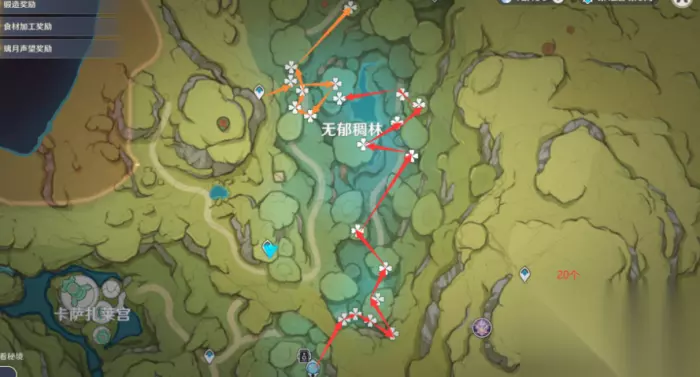 四、无郁稠林 这边的树王圣体菇,要在空中来回飞来飞去才能更好拿到,一共有20个。