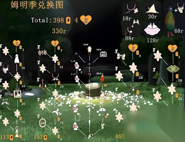 兑换物品 一、季节向导兑换树: 姆明伞、隐形裤、特殊季节动作(看书动作) 二、妮妮兑换树包括: 鞋子、蝴蝶结头巾、铃铛、乐谱