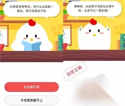 蚂蚁庄园小课堂9.11问题答案: 问题:小鸡宝宝考考你,为什么头发能一直长,而汗毛却长不长? 答案:生长周期不同 答案解析 头发的生长期长达3至7年,最长可达25年,而汗毛的生长期只有2个月; 头发也不是无限生长的,具有退行期和休止期,无论头发还是胡须都不可能无限制的生长; 目前记载的头发最长记录为320CM,随着生长期结束,头发也会被新的替换。