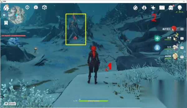在游戏里面玩家开启芬德尼尔之顶是需要完成两个条件额,一个就是破坏三个坚冰,这三个坚冰位置分别是在忍冬之树以及上图小编为大家标记的位置,大家打破这三个坚冰之后就可以解锁世界任务山中之物,之后跟着这个任务就可以到达达芬德尼尔之顶,大家在达芬德尼尔之顶之后在打破达芬德尼尔之顶附加的三个坚冰就可以解锁达芬德尼尔之顶秘境了。 一、覆雪之路传送点 往前看,有一个冰坨坨,每捡一个深赤之石,就可以锤一下冰坨坨,需要砍四下。然后出现忍冬之树。