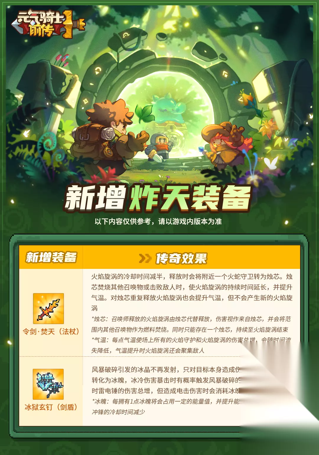 SS4赛季更迭须知来啦,文内还有新专精介绍和职业平衡性调整,快来看看吧! 【赛季更迭时间节点】 《元气骑士前传》SS3赛季结束时间:2025年9月16日 凌晨4:00(北京时间); 《元气骑士前传》SS4赛季开启时间:2025年9月19日 上午10:00(北京时间)。 注:新赛季骑士团勋章、新系列扭蛋皮肤将于SS4赛季开启时同步开放。 2025年9月16日凌晨4:00-2025年9月19日上午10:00期间为“赛季过渡期”。 温馨提示: SS3赛季骑士团勋章结束时间为:2025年9月19日 凌晨4:00(北京时间); SS3赛季末狂欢、英雄史诗系列扭蛋皮肤下架时间为:2025年9月19日上午10:00(北京时间)。 【赛季奖励结算】 SS4赛季中,抵达红玉段位的层数与上赛季一致,为400层,且试炼之地的部分地图依旧为虚空之地。段位结算奖励可通过【主界面右上角菜单栏】-【常规活动】-【赛季奖励】处领取。 注:SS3赛季的试炼排行榜的奖杯奖励将在SS4赛季开启后通过邮件发放。 过渡期游戏内容结算、游戏角色划分、排行榜奖励将遵循先前赛季的更迭规则。此外,在SS4赛季我们将划分出纯净赛季角色仓库和永久角色仓库,小骑士们不用担心仓库格子不够用啦~ 【游戏内物品继承规则】 一、装备 装备的划分与继承规则将遵循先前赛季的更迭规则。 二、其他游戏内物品 专精、熔铸石等游戏内物品将遵循先前赛季的更迭规则,可前往SS1赛季更迭须知查看。【游戏内玩法与功能】 一、虚空漫游&虚空工艺 1、SS4赛季中虚空漫游玩法、虚空工艺(包含虚空转换)将关闭,已有的虚空装备不受影响; 2、虚空火山石、虚空能量石等虚空养成材料将在SS4赛季失效,小骑士届时可在背包处将其回收。 二、军团入侵玩法 SS4赛季军团入侵玩法将保留,并根据新赛季环境调整了排行榜奖励与宝箱奖励,小骑士可在周末时前往体验。 三、骑士集结活动 SS4赛季骑士集结活动将会保留,还没有集结的小骑士可以继续参与活动哦! 四、其他游戏内玩法与功能 其他游戏内玩法与功能将遵循先前赛季的更迭规则,可前往SS1赛季更迭须知、SS2赛季更迭须知、SS3赛季更迭须知查看。 【新专精及新炸天装备】 SS4赛季烈焰法师、风暴守卫、裁决者将获得技能专精! 温馨提示:裁决者专精将于SS4赛季后续版本上线,其余两个职业专精将在9月19日SS4赛季开启后同步上线。