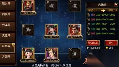 通吃阵型 风扬阵 【鬼神吕布 逆天存在】 群阵营的吕布真的很逆天。作为一个勇将,能抗是一定的,身板是足够厚的。再来看看技能,对敌人造成1820%伤害,这个伤害相信无论打在谁的身上,都不会好受吧。伤害太高了,而且附带斩杀敌方巨量士兵。小兵打人也是有伤害的,俗话说蚁多咬死象啊!~并且!注意还有提高自身伤害20%,持续20秒。要不要这么过分。本身伤害就夸张,以百分比提高伤害更是无敌的存在。自身伤害越高百分比加的越高。