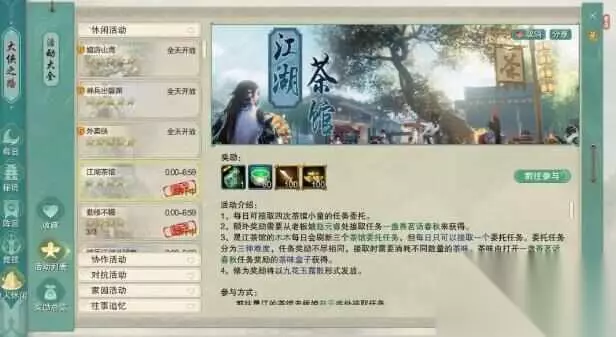 4.茶馆日常 无界点击前往的时候,是自动从茶馆老板娘赵云睿那领取任务了,旗舰版还得找老板娘领任务。完成老板娘旁边茶馆小童四个任务,最后找老板娘赵云睿交任务就行,也很简单 (其实还有其他的小任务,但是完成到这就行。) 注意:茶馆地图可以开阵营模式,所以进图前请确认自己没有开阵营模式,若是红名进去会被人误以为是捣乱的,所以茶馆可以每天最先做。