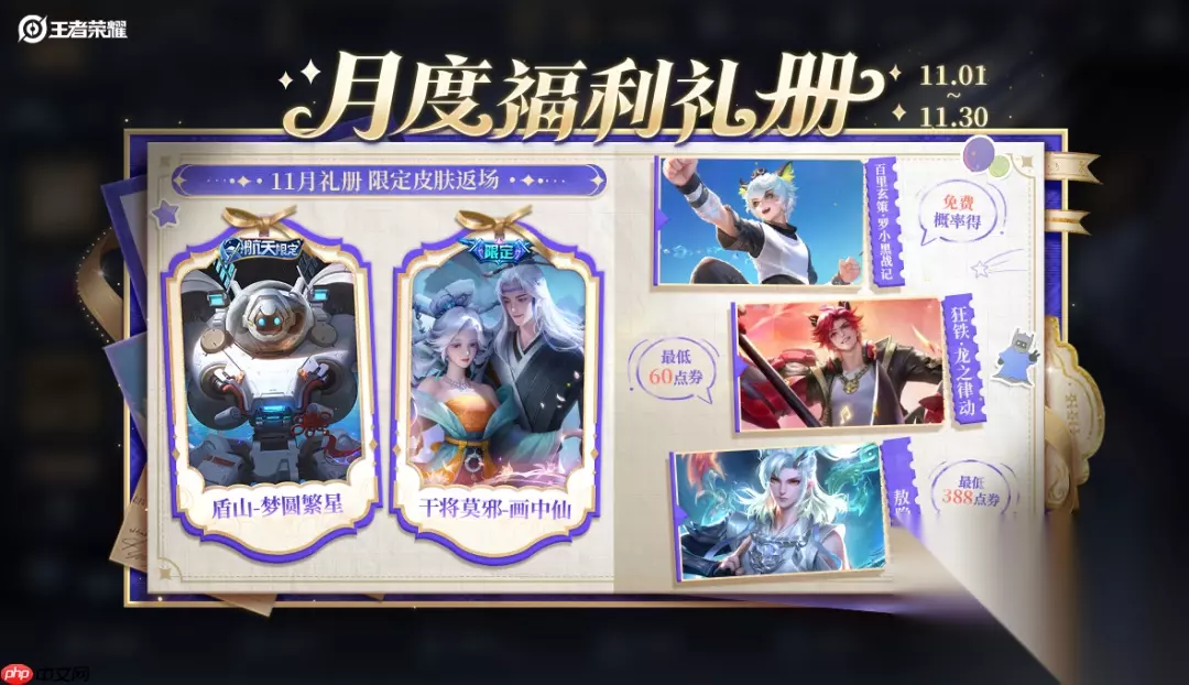 王者荣耀2025KPL年度总决赛福利有哪些免费领时装活动,送全新元流时装、SNK英雄自选宝箱、星币奖励; 这一次,鸟巢见!活动体验线上鸟巢观赛打卡,本命英雄送你冠军纪念头像框; SNK英雄皮肤中文语音限时领取活动上线,体验SNK中文语音; 星币专区上新:蔬菜精灵联动阿古朵-顽趣星元萌趣来袭、全新2025KPL年度总决赛回城开启兑换; KPL明星选手“语录”,星币限时兑换,趣味语音等你来玩; 11月礼册即将开启,免费奖池领奖次数刷新,折扣奖池返场干将莫邪-画中仙、盾山-梦圆繁星。
