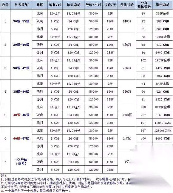 传奇新百区分身修炼升级表可以让玩家们清楚了解到每个地图挂机经验是多少,每个等级区间在哪里挂机是最好的,具体的可以参考传奇新百区分身修炼升级表一览。 传奇新百区分身修炼升级表一览