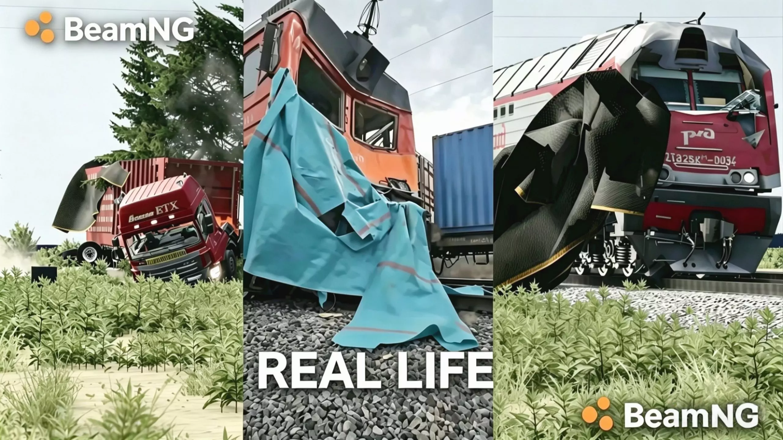 这是BeamNG车祸模拟器的虚构游戏内容,以第一人称视角呈现东风4D火车追尾韶山8致脱轨的场景,还包含坦克步战装甲车相关内容,内容为虚构,感谢MOD、声乐创作者。