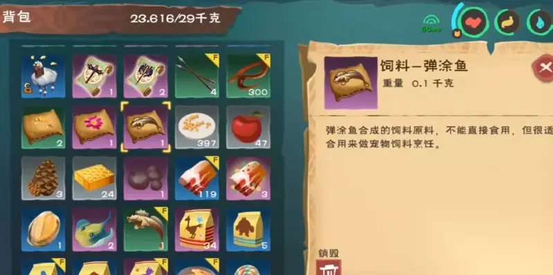 小顽皮蝾螈饲料的配方为优质肉×5、弹涂鱼饲料包×1、黄豆饲料包×1。这三种材料需要通过不同的方式获取,并在工作台和烹饪锅中完成合成。优质肉通常通过击杀特定怪物掉落,弹涂鱼需使用小蚯蚓在秋湖、仙女河等水域垂钓获得,而黄豆则集中在春日海岸灯塔附近的采集点。