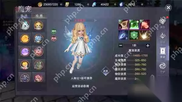 辅助型魔宠拥有强大的基础技能,如超级利刃祝福、超级法术祝福、高级元素之子、高级船长理论等。为了避免这些技能被覆盖,尽量避免学习初级技能。 魔宠装备:魔宠的4件装备可提升攻击、防御、生命值和资质属性,其中魔宠护符尤为重要,能额外增加魔宠技能。装备品质越高,附加的技能数量和品质越高。