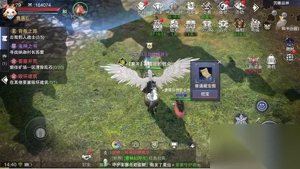 2、点击使用后,你可以在游戏的主界面看到一个藏宝图,点击“挖宝”,即可前往挖宝地点进行挖宝。