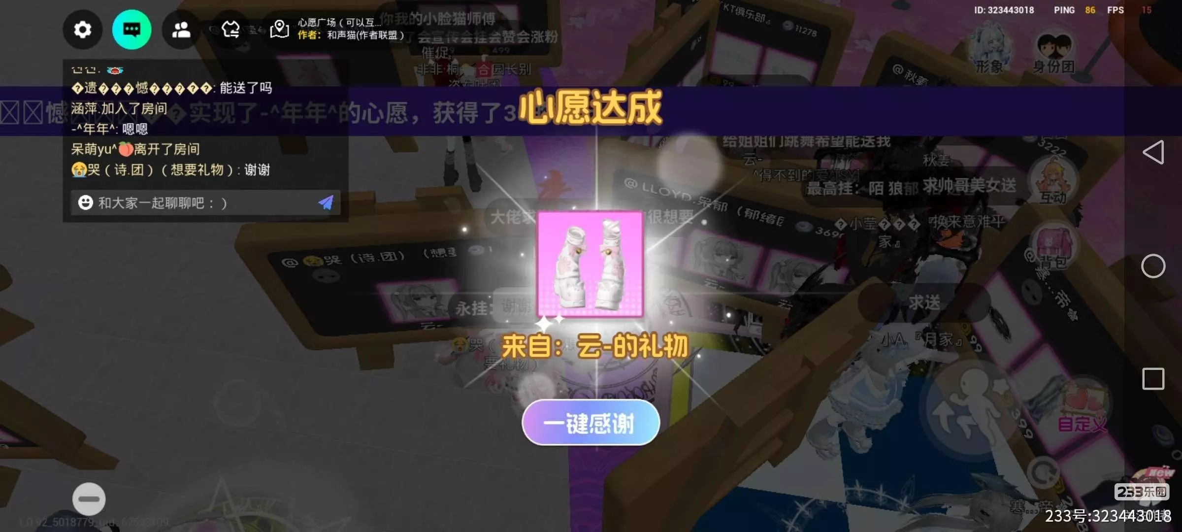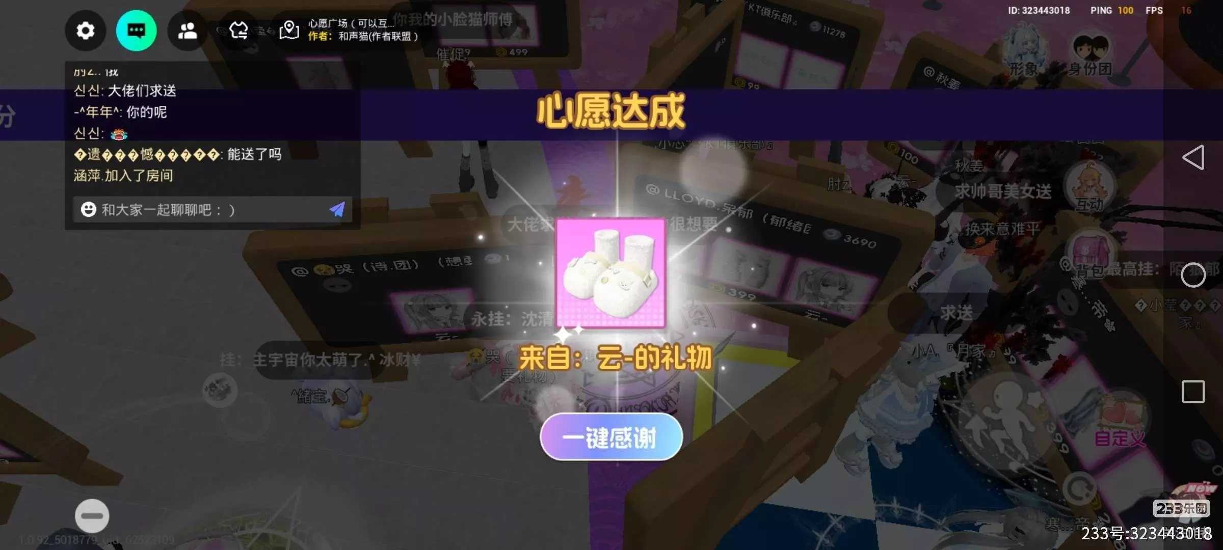 大家好,我今天早上玩心愿广场,被一个叫云的大佬送了,我希望,每天都会被人送😍😍