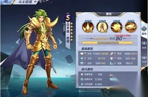圣斗士星矢白羊座史昂生命为S,高成长的加成,为配合星屑旋转打出秒人的单体伤害。物理攻击只有C,物攻加成的效果不明显,基础速度只有162,是唯一的缺点。这块是个短板,想看更多资讯攻略尽在233乐园网。