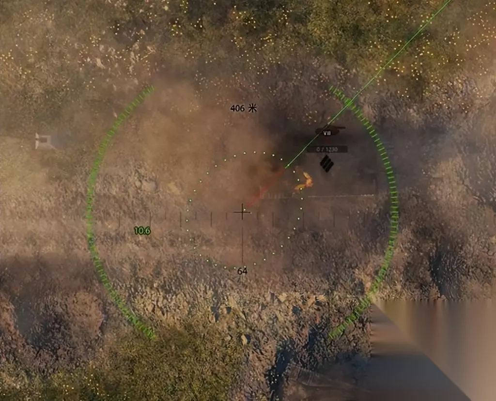 这个角度被称为“抛物线视角”,我们的视角就是最终火炮炮弹与目标接触时的角度,在这个视角下虽然画面内的接收信息比上帝视角要少,但是便于我们观察火炮炮线的位置。