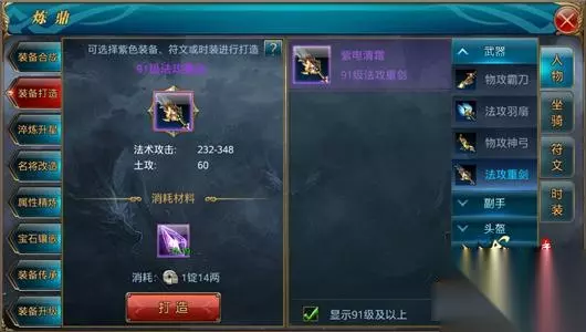 紫装的打造 品质最高的紫装能够大幅提升自身属性,然而紫装获取较为不易,除了达到特定成就系统会赠送衣服与武器之外,其他部位的紫装则主要通过装备打造与合成来获得。虽然极品的绿色装备有一定的概率可以通过合成来转变为紫色装备,但1.5%的概率微乎其微,国王许愿也有小概率得到紫色装备。打造紫色装备最为主要的途径是通过紫色晶石来打造装备或者一键将非紫色装备升级为紫色,两种方法都需要消耗大量的紫色晶石,紫色晶石的积累极为关键。紫色晶石可以通过国王许愿、国战奖励以及重回虎牢关三个主要途径来获得,在前期紫色晶石不足的情况下,应优先合成能够带来攻击加成的几个部位,后面再根据等级的提升进行装备升级与合成。 在前期等级提升较快的时期,可以选择绿色品质装备进行过度,当等级提升进入一个瓶颈期,才是各种装备打造的最好时机。重回虎牢关副本以及国王许愿活动是每日必不可错过的一个环节。