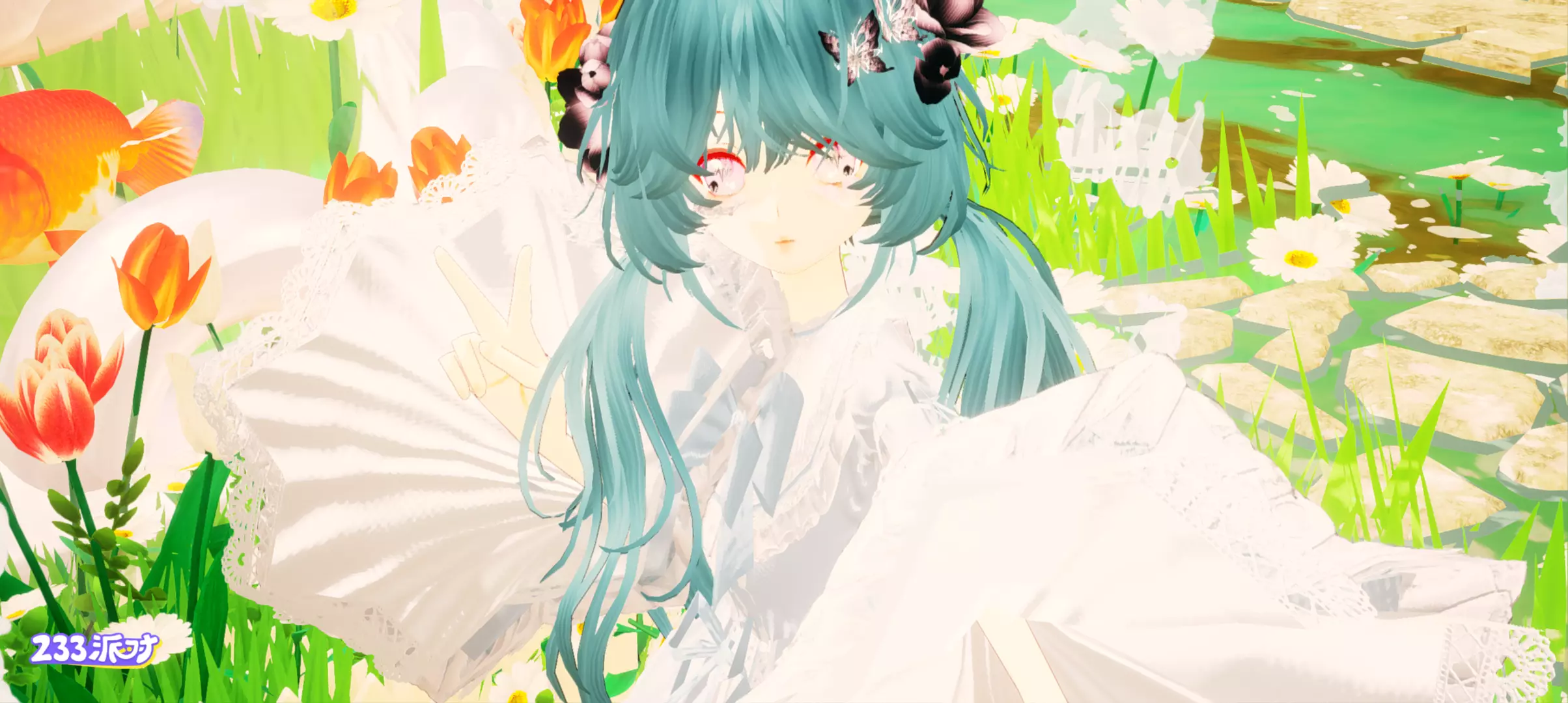 这张是个中景,可以说是“艳花衬流水,流水衬艳花”郁金香🌷与流水在一起会很搭,建议大家试一下~🤗