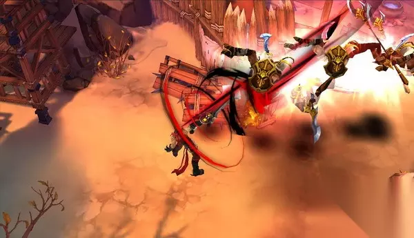 现在再来说一下战斗吧,毕竟是动作游戏嘛,战斗还是挺爽的,手感不错。随着升级,可以学很多个技能,不过只能安上4个,我比较习惯用前4个,上来先一个跳斩,这个技能跳起来以后不容易被打到,而且跳起来以后还可以控制移动,落到怪旁边,伤害满高的,基本可以把怪击倒,然后再一个巨力挑空,把怪物击飞,这些技能的冷却时间是不一样的,合理安排,可以多打几下。另外还有一个大招也挺好玩的,怪物都会飞起来,就像切西瓜一样滑屏就可以了,可以攒到怪多的时候用,比较不浪费。 下图这个技能叫绞杀,也可以把怪都挑起来打,当然图是我网上扒的,嘿嘿。