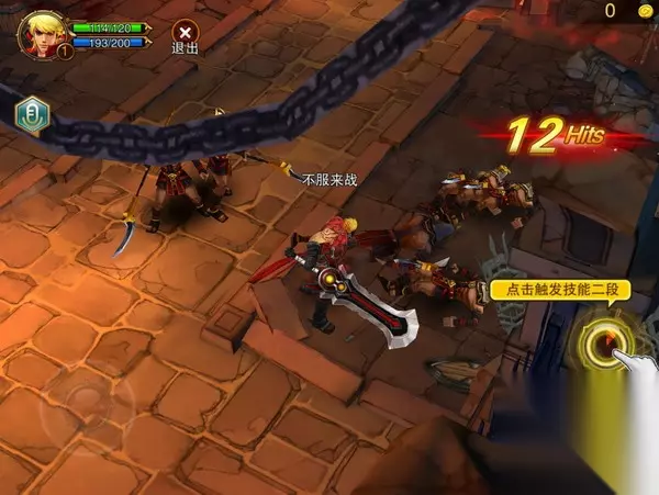 剧情大意是忽伦在牢里,我扮演的帅哥进去救他,咦,忽伦怎么又被抓了,圣女之歌里忽伦就被抓了好几次,让女一号和女二号各种搭救。印象比较深的是,女一号为了救忽伦,还对看门的守卫施美人计。咳咳,说跑偏了,继续说这个游戏。 新手教学就是打败守卫,跟忽伦一起逃出去,当然我很顺利的通过了。这里要提到一个比较有意思的地方,就是他的技能是可以点两次的,连着点,第2段技能会比较厉害。