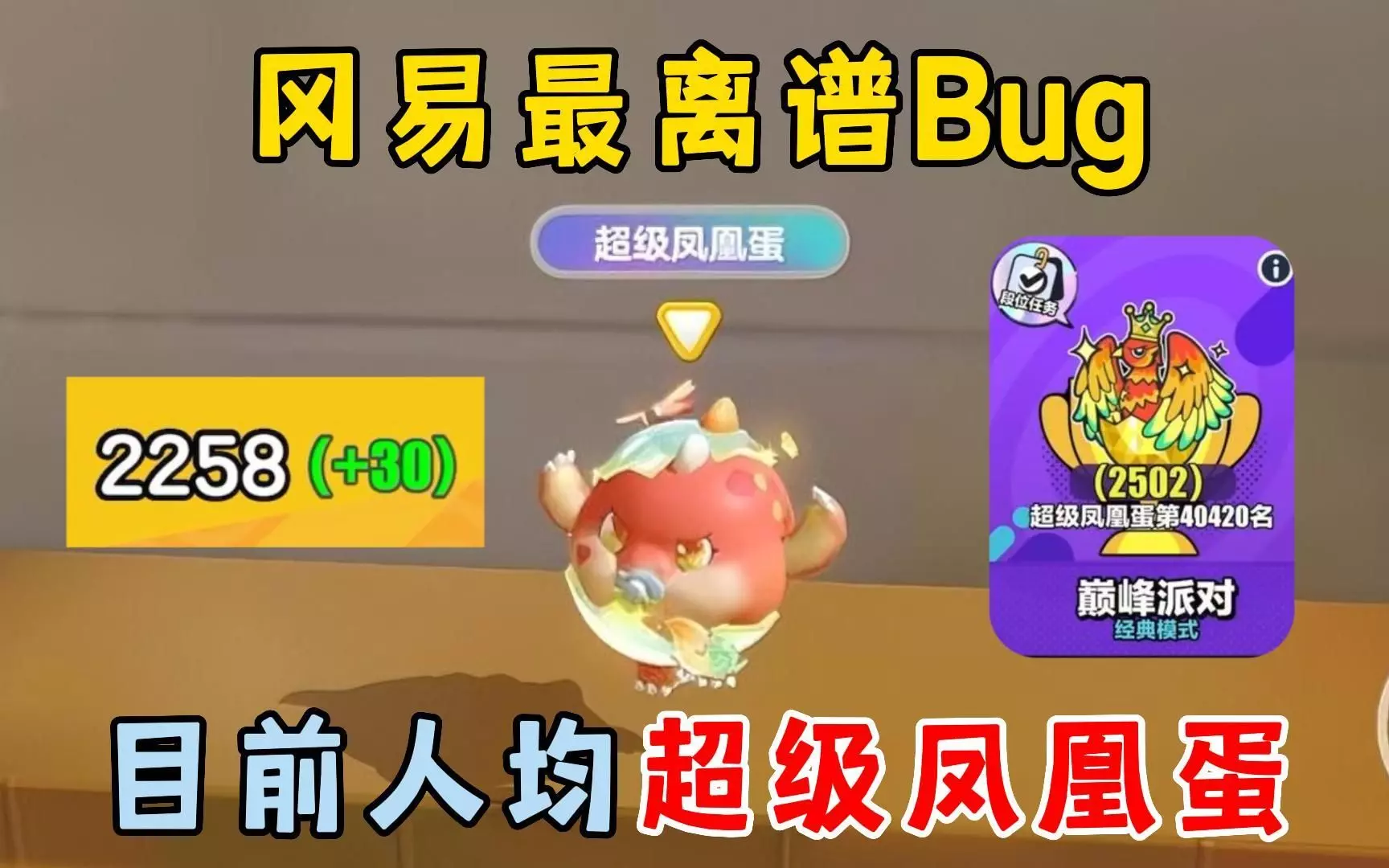 蛋仔派对:冈易最离谱bug,巅峰赛加分错乱,目前人均超级凤凰蛋