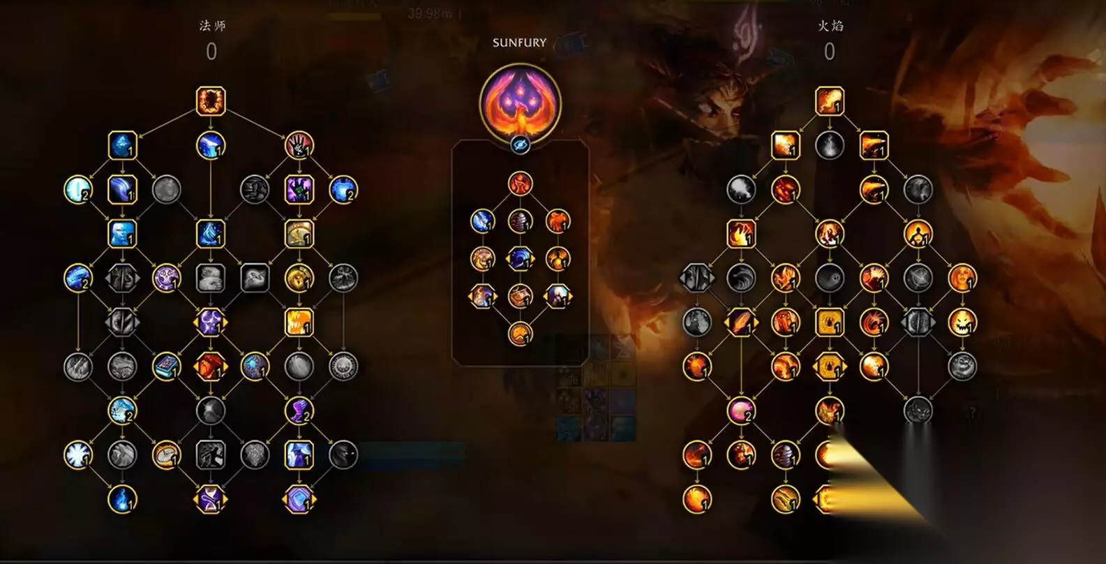 魔兽世界11.0火法在近期进行了调整使得霜火的天赋选择有一些变化,不少玩家不清楚在新版本当中怎么可进行加点,小编为玩家们带来了日怒和霜火的加点攻略,下面就一起来看看吧。 11.0火法加点伤害循环攻略 一、日怒 当前的日怒依旧拥有非常出色的单体和AOE伤害,玩家用其打大秘境会有很高的死亡代价。 单体天赋一览: