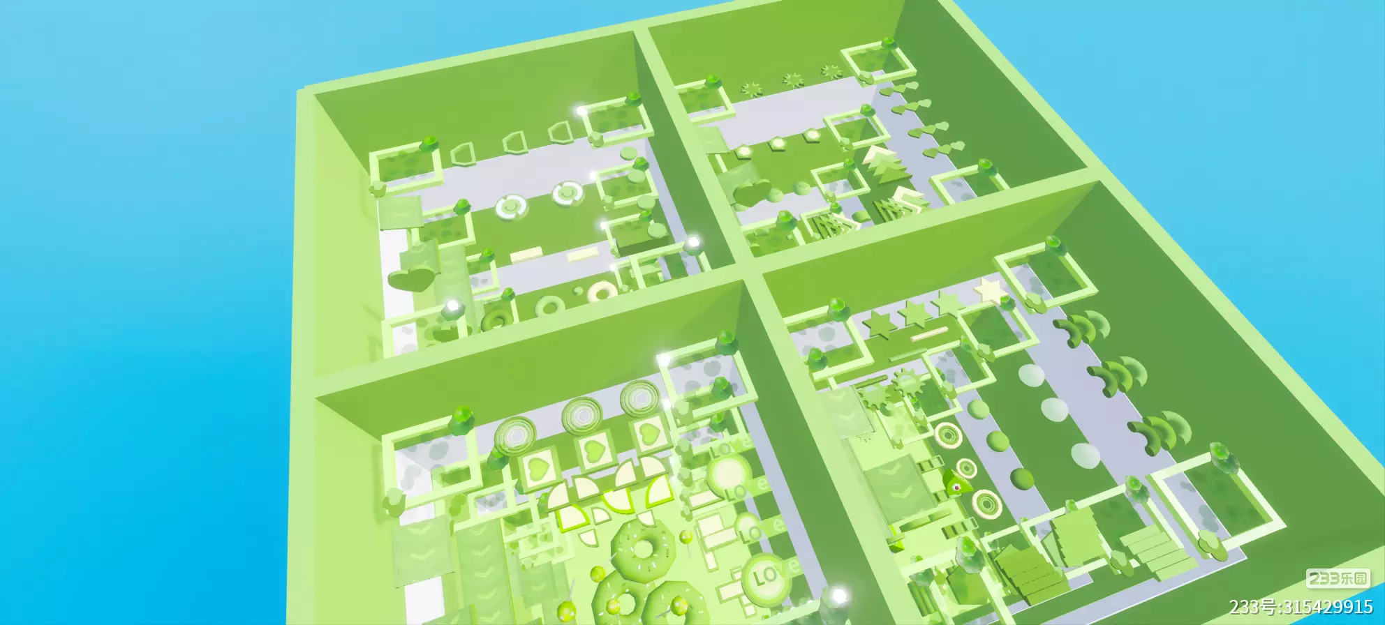 - 细节超用心:能看到爱心、星星、甜甜圈这些软萌元素,还有小树苗、齿轮等装饰,既像游戏地图又像童话里的秘密花园,每一块区域都有不同的小惊喜~