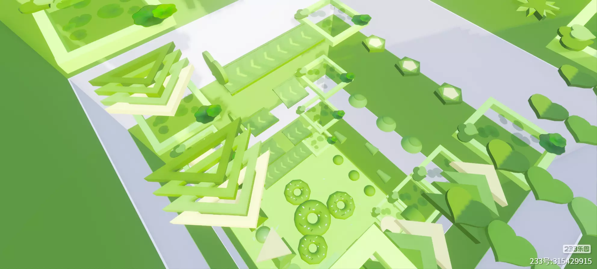 这个设计太有“清新治愈感”啦!整体是低饱和的淡绿色调+低多边形风格,看起来像个可爱的“方块迷宫乐园”~