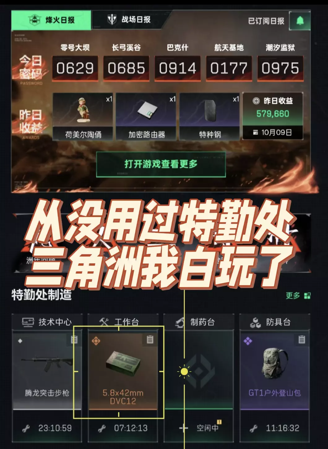 [呃R] 之前升级特勤处就当做任务升完了,从来没注意过特勤处是可以生产东西的,我三角洲白玩了。腾龙金蛋好几千一发,手搓算下来只要575?是我算错了吗。