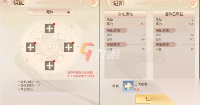天书的玩法 天书领悟:消耗背包中的天书即可激活该天书,获得更多领悟属性加成(一天限激活一次) 天书装配:领悟后的天书即可进行装配,装备上天书后我们就能获得天书的属性加成和各种特殊技能了(每个角色最多能够装配4本天书)。 天书进阶:消耗古代秘卷、上古秘卷即可对天书进行进阶(进阶后会对天书的属性和技能效果有着大幅度的提升。 天书合成:重复的天书可以通过合成,来获取更高级的天书。 天书的获取:限时活动(五行之序、熊万军的春天、修罗道)、逸灵山谷争夺战、兑换商店、巅峰对决、阵营商店等地方都可以获取到天书哦。