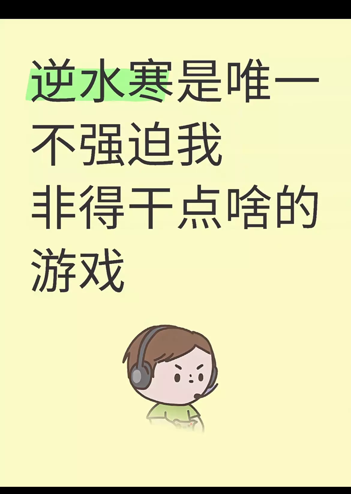 玩逆水寒,总觉得不上线的时候想上线,上了线又不知道干嘛。 玩了其他游戏之后,我悟了:逆水寒恰恰就是唯一一款不强迫我非得干点啥的游戏(除了充钱,不是) 对探索不感兴趣,从来没探索过任何地图,没事不影响; 对剧情不感兴趣,昨天刚把去年周年庆的奇葩机甲剧情过了,刚玩到九光寒林跟,没事不影响; 对组队打副本不感兴趣,怕被队友喷,一直和AI队友,躺地上看队友通关,没事不影响; 对PVP不感兴趣,本来还打过3v3,但是到了宗师以上段位都卷的不行,队友一拉胯就生气,索性再也不碰所有PVP了,还是没事不影响; 对装备和战力不感兴趣,反正3个月后也都淘汰了,没事不影响。 天天不务正业,上线就是徒弟生不生偏色福宝宝,徒弟要不要打牌…… 但就这——每个赛季的三个赛道盖世的头像框还是都拿了,创意工坊竞速随便玩玩就服务器前50了,闲趣就随便搞搞庄园到盖世,副本每周正常刷也能在赛季末到盖世。副本白发一个没落下 松弛感拉满了,想干啥就干啥,这可能就是我还在继续玩逆水寒的原因吧。#逆水寒手游 #游戏圈那些事