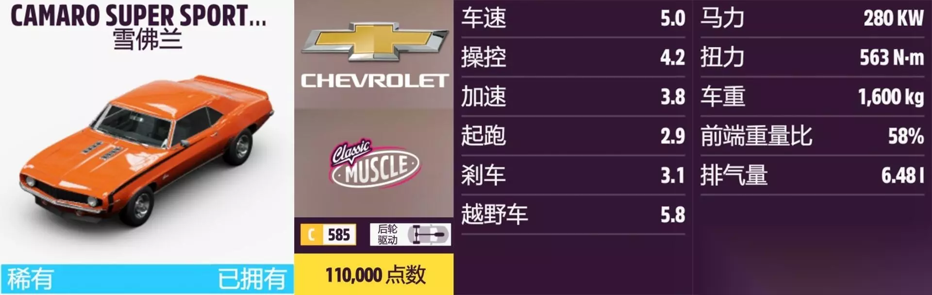 CAMARO SUPER SPORT COUPE 年份:1969年。 解锁方式:抽奖或通过车展购买。