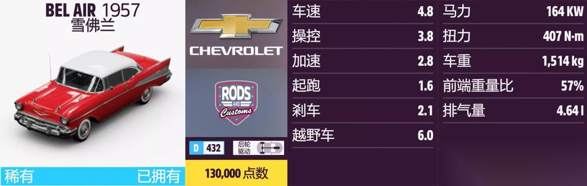 BEL AIR 年份:1957年。 解锁方式:抽奖或通过车展购买。